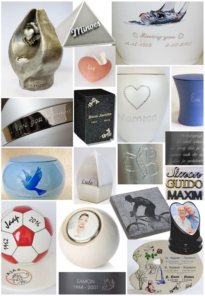 tekst, een handtekening, een gedichtje of spreuk aangebracht worden. Ook kan met een foto, afbeelding of accessoire op de urn een mooi en persoonlijk